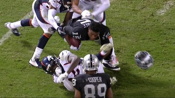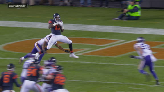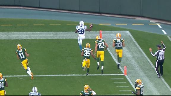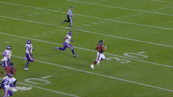 Miami's Mark Walton breaks through tacklers near the line of scrimmage before running for an 80-yard TD. No. 25 Miami leads Appalachian State 7-0 on ESPN.