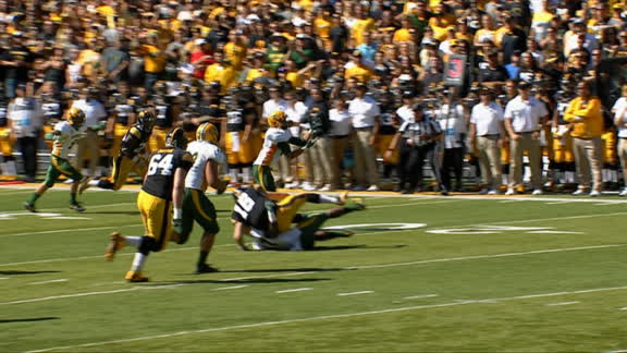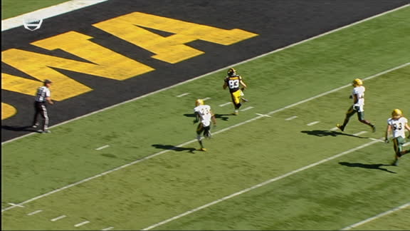 QB C.J. Beathard throws short to Riley McCarron, who goes up the middle for a 30-yard TD. No. 13 Iowa and NDSU are tied 7-7 on ESPN2.