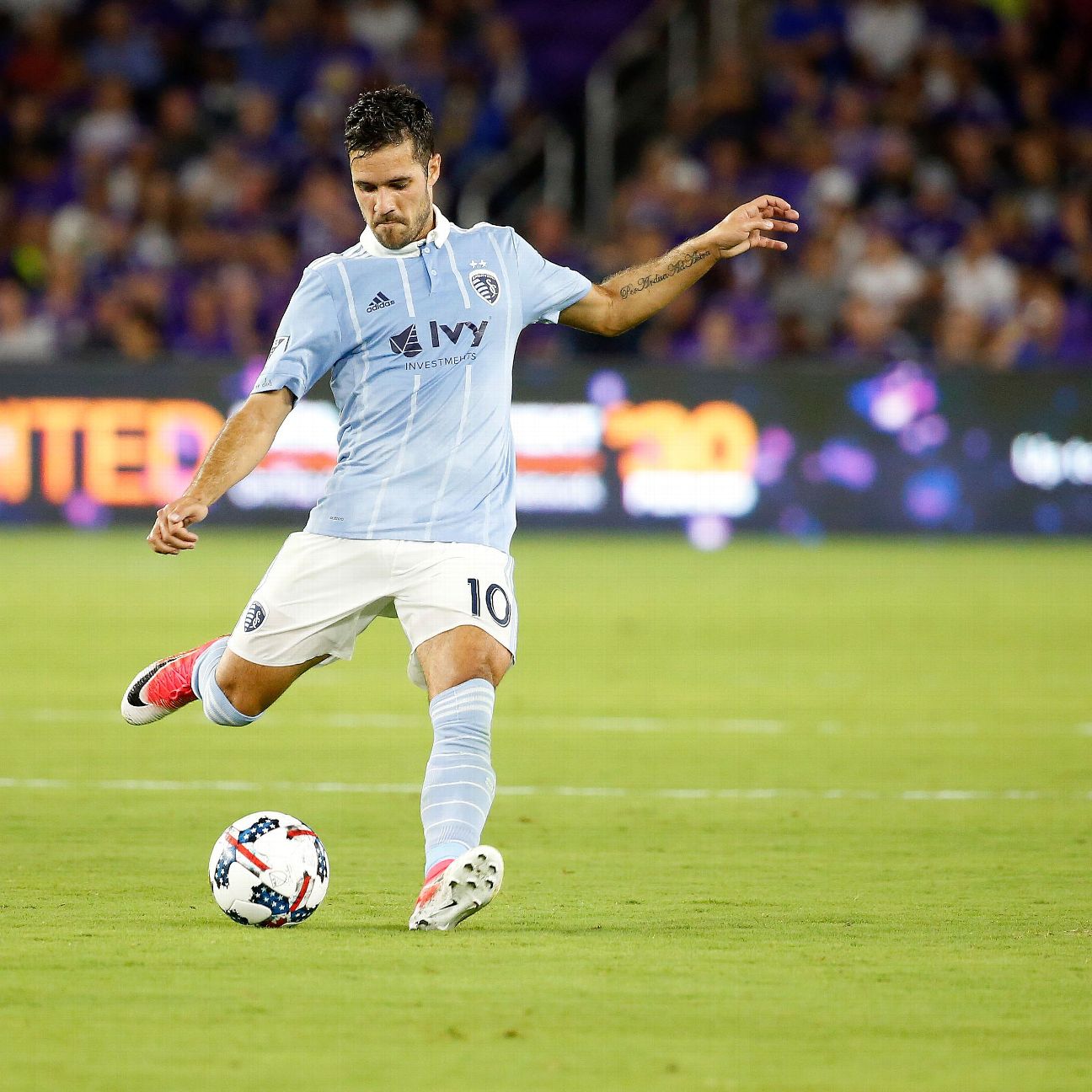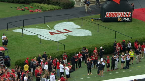 In honor of the late Muhammad Ali, Louisville created a butterfly symbol with his name in the middle on both the grass and their helmets.