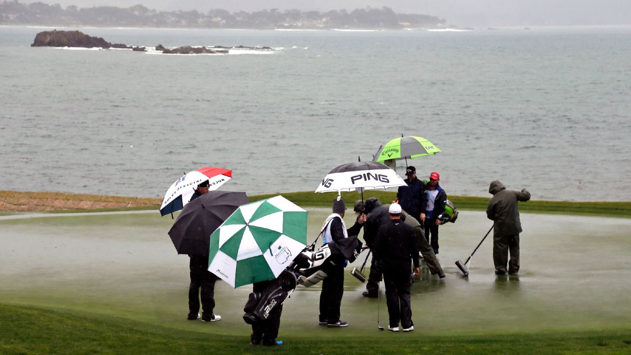 Lefty, Spieth among leaders at rainy Pebble Beach