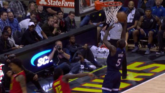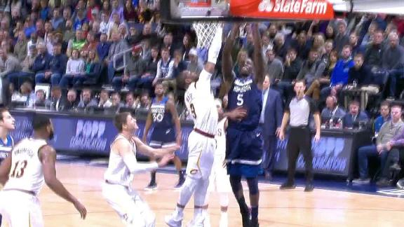 Gorgui Dieng fakes a pass then drives to the basket and slams it home.