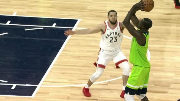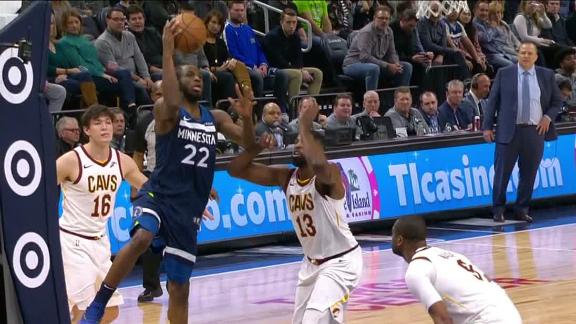 Despite the Timberwolves' great ball movement, Tyus Jones isn't able to get the shot to fall. But the Wolves are given a second chance and Gorgui Dieng nails the shot before the third-quarter buzzer sounds.