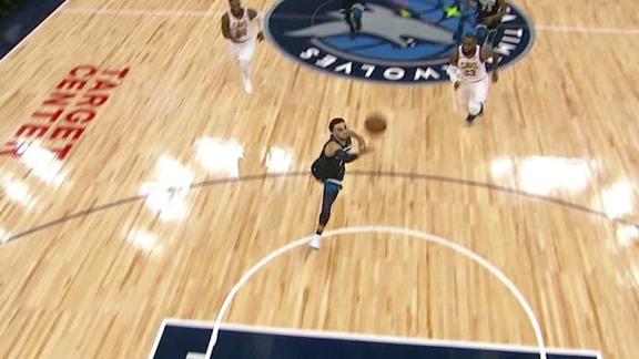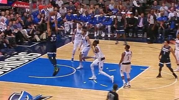 Tyus Jones finds Karl-Anthony Towns on a nice bounce pass and Towns finishes with a two-handed flush.