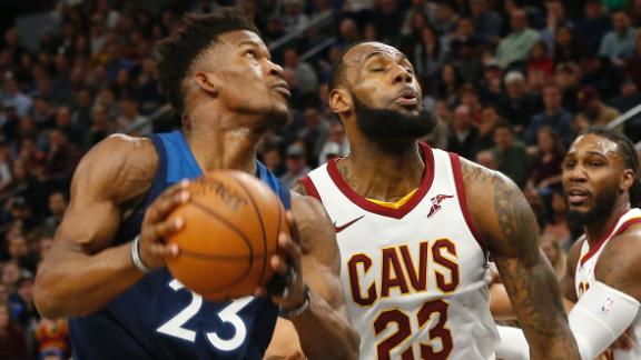 Jimmy Butler scores 21 points for Minnesota while LeBron James only scores 10 points and Isaiah Thomas gets ejected in Cleveland's 127-99 loss.