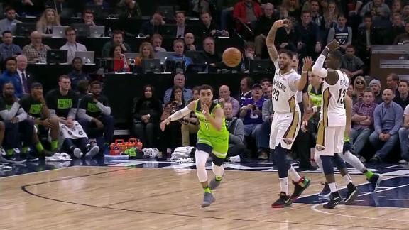 Jones bounces pass to Towns for dunk