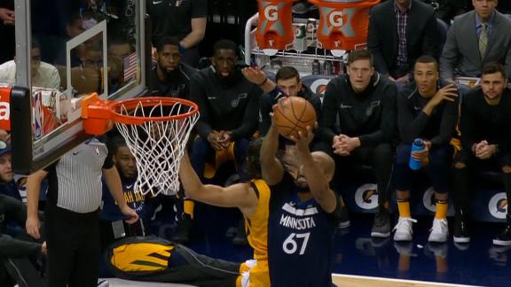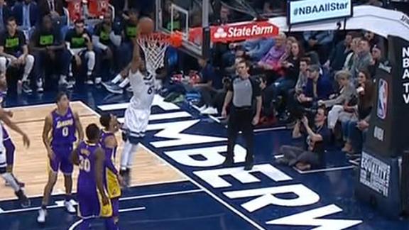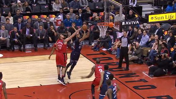 Taj Gibson takes the pass from Andrew Wiggins and takes it to the rack for a two-handed slam.