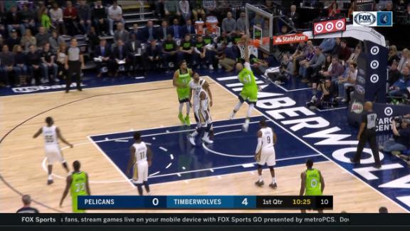 Taj Gibson and Karl-Anthony Towns contribute to Minnesota pulling ahead with a 9-0 start against the Pelicans.