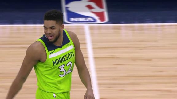 Taj Gibson collects the loose ball and finds Karl-Anthony Towns, who throws down the strong dunk.