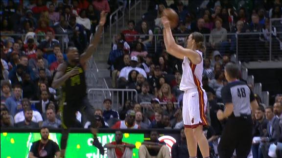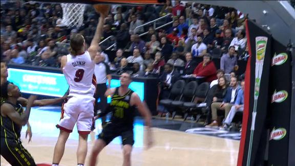 After just two minutes of playing time Wednesday, Heat forward Kelly Olynyk collected a $1 million bonus for reaching 1,700 minutes on the season. Olynyk celebrated by hitting five 3-pointers and scoring 19 points in the Heat's 115-86 win at Atlanta.