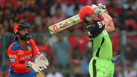 For much of the innings, de Villiers commanded centre-stage, unleashing his full repertoire of sweeps, lofts and drives. While the midwicket and long-on regions came in for a special peppering, no part of the ground was spared as the ball was regularly send soaring. Kohli played second-fiddle to de Villiers for the most part, but took on the starring role in the last three overs, pillaging 57 off his last 14 balls to bring up his third century of this IPL season - also a record - and lift his side to an imposing 248.